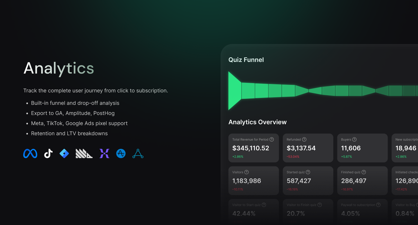 See exactly how users move through your funnel with automatic event tracking at every step. Monitor revenue, identify drop-off points, and understand which traffic sources drive the most valuable subscribers.